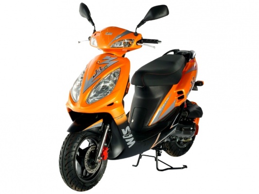 Комплектация SYM Jet EuroX 50 оснащена вариаторной коробкой передач, (4 л.с.). Стоимость данного скутера составляет 97 500 руб.